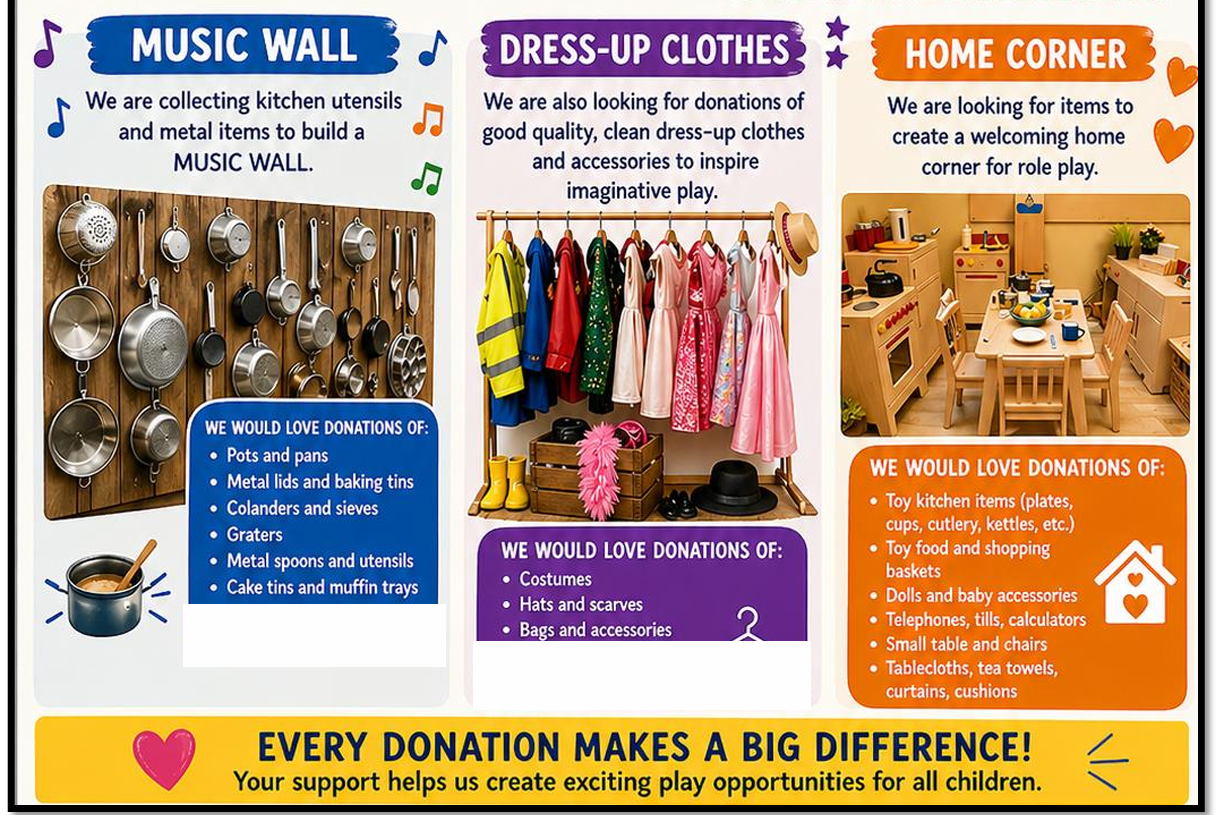 Are you able to help us develop our play provision? We are developing our play opportunities through OPAL (Outdoor Play and Learning). We are currently looking for donations, particularly of items below. If you feel you, or a business you know, could help further create outdoor play opportunities, please contact Mrs Henry, Mrs Rudd, Mrs Roberts or Miss Smith. Thank you for your support.